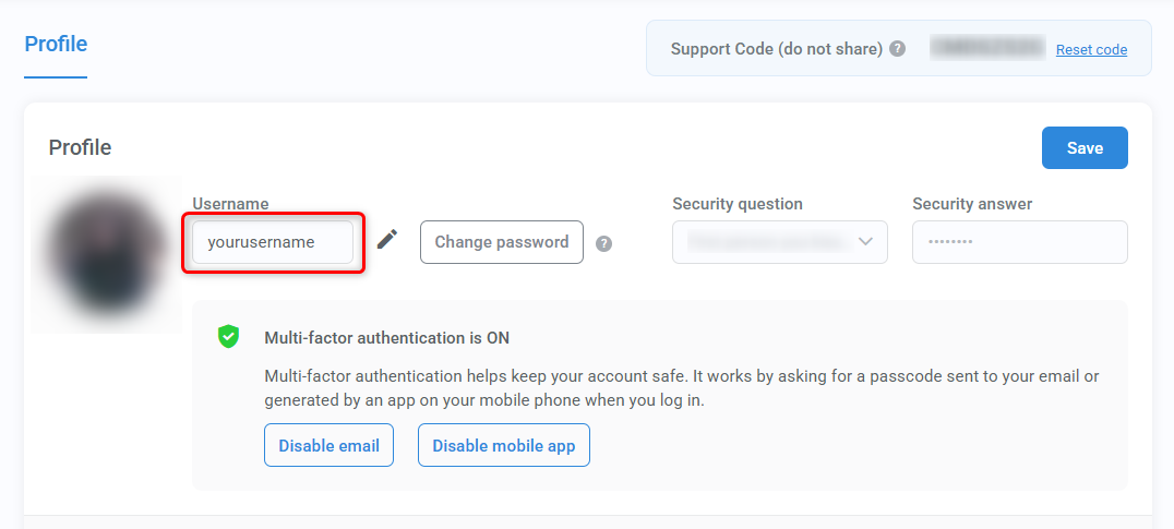 The account username is found in your account Profile. Click the avatar image in the top-right corner of your account to access it.