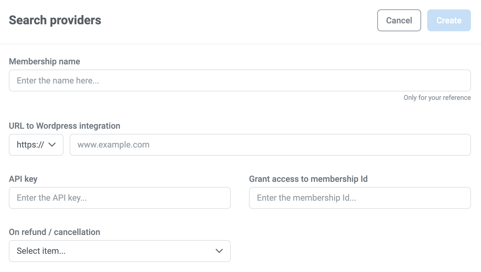 - Membership name: Name your integration. This is to help you identify it in your account.