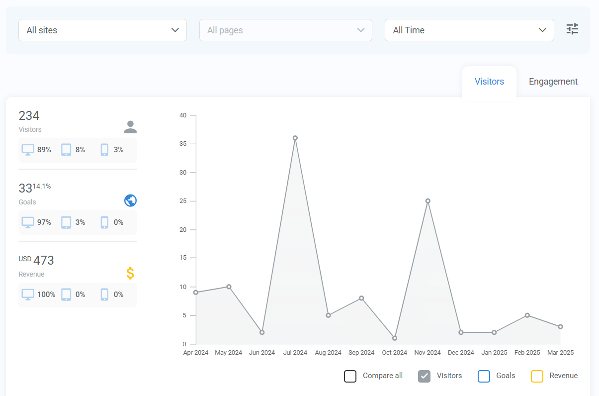 - Visitors – See how many people visited and what actions they took.